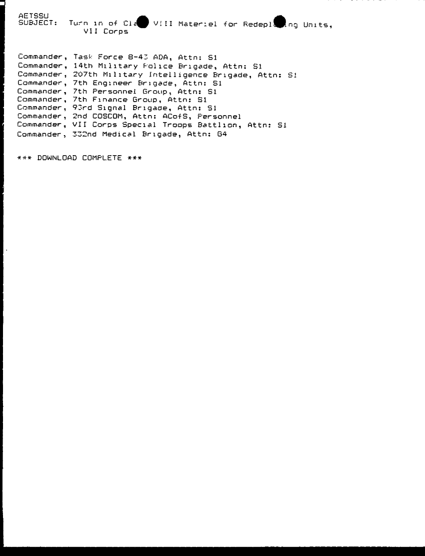 Subject = MEMO 3 APR 91 TURN IN CLASS VIII MATERIAL REDEPLOY