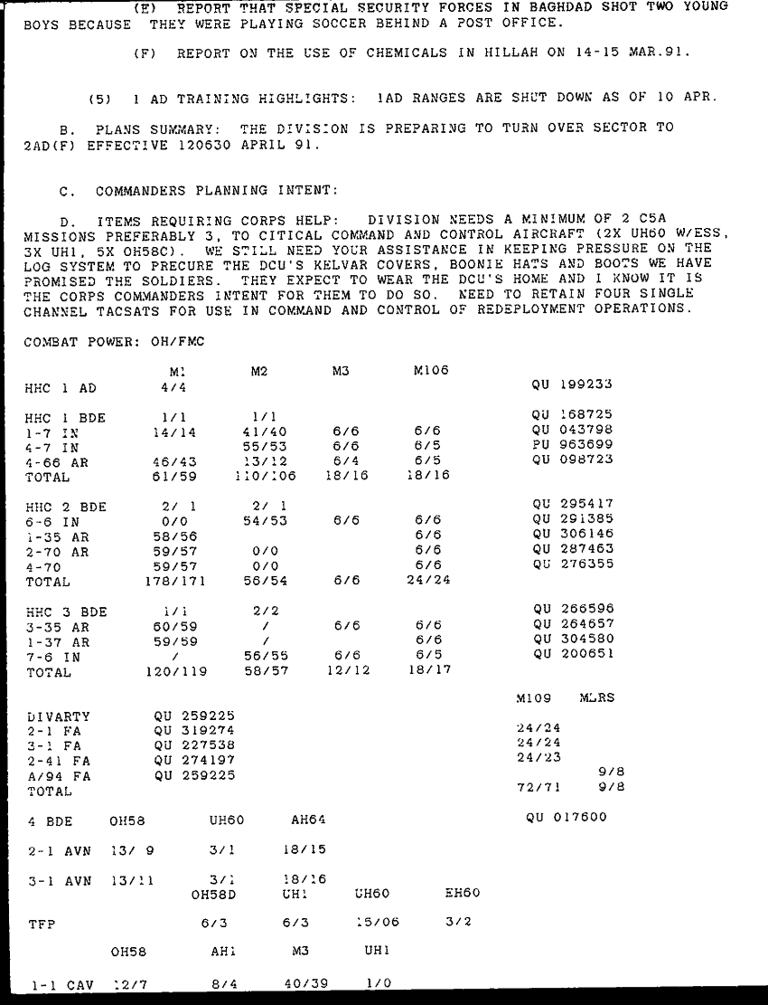 Document 4 f:/Week-48/BX000531/LOG AND REPORT 10-11 APR 91/first armored division commanders report 11 apr 91:0128971851483
