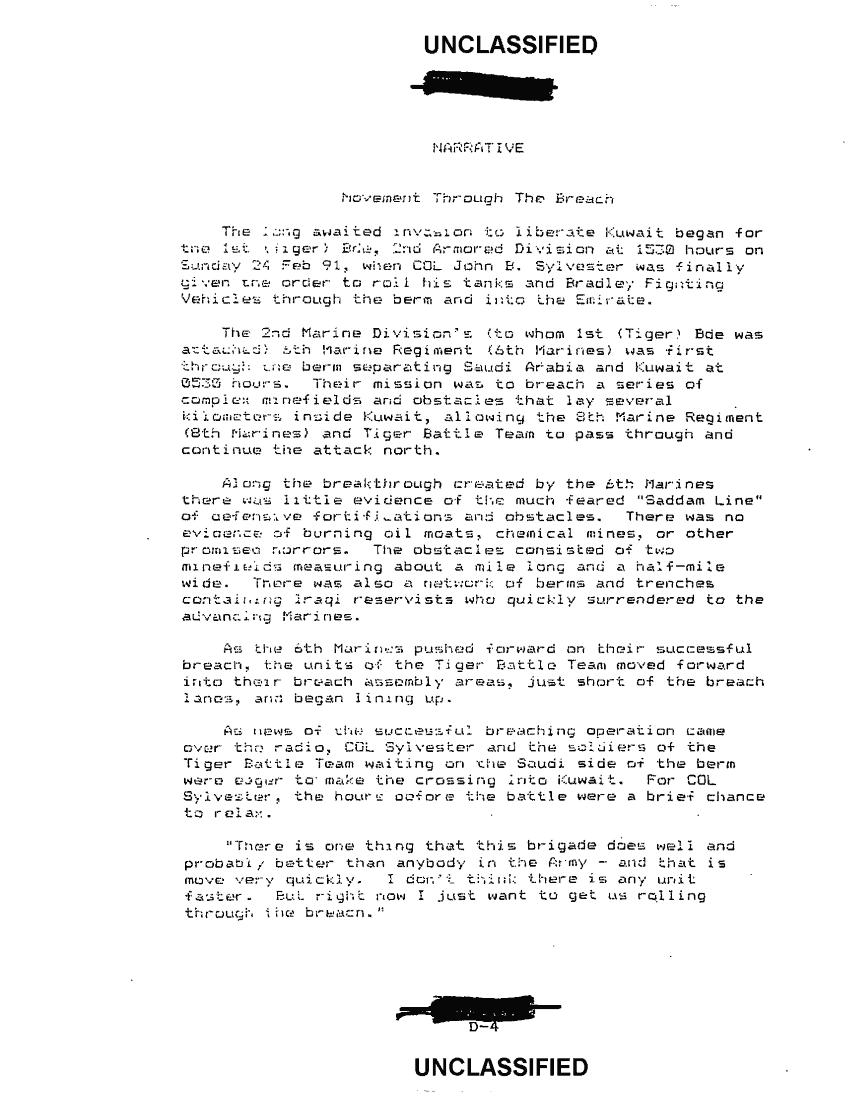 Subject = ANNEX D TIGER BRIGADE CHRONOLOGY TABLE OF CONTENTS
