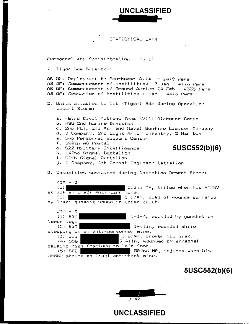 Subject = ANNEX D TIGER BRIGADE CHRONOLOGY TABLE OF CONTENTS