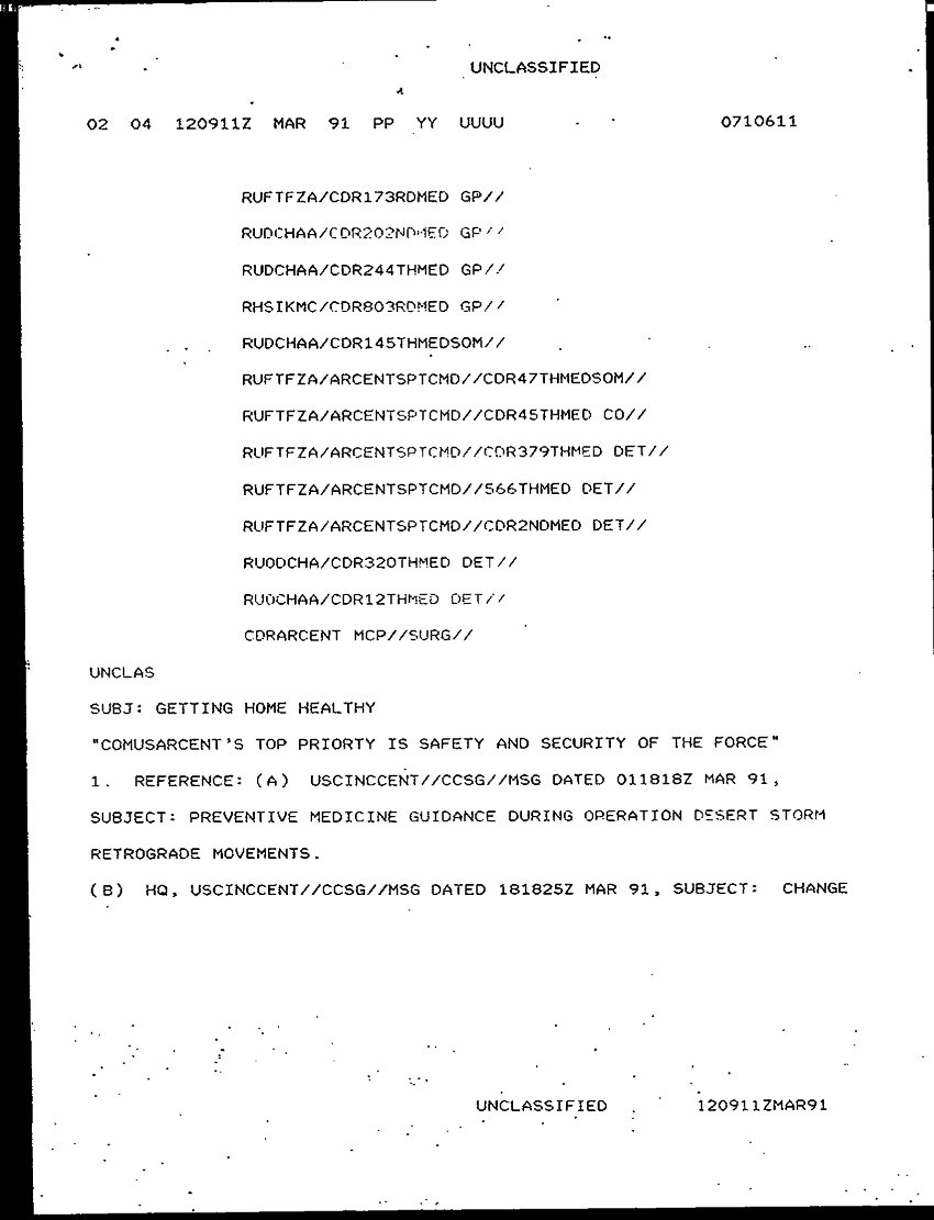 Document 4 f:/Week-48/BX005606/10TH MASH GEN MED SVC CORRESPONDENCE FILES/msg 12 mar 91 getting home healthy:0306970949434