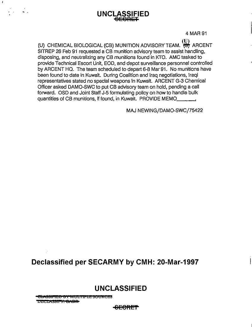 Subject = CHEMICAL AGENT EXPOSURE IN IRAQ 5 MAR 91