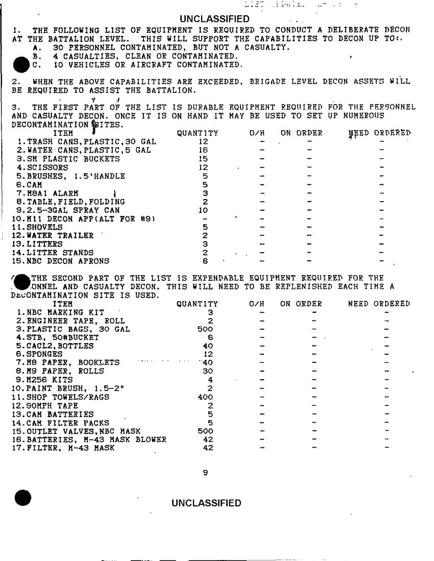 Document 2 f:/Week-62/BX000288/BATTALION LEVEL DECONTAMINATION AND CASUALTY TREATMENT/list of equipment to conduct a deliberate demon at battalion:0423971004204