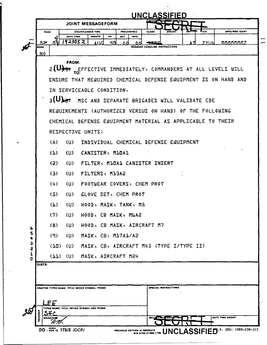 Subject = CHEMICAL DEFENSE EQUIPMENT STATUS