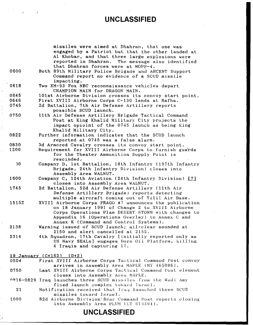 Subject = XVIII AIRBORNE CORPS OPERATION DESERT SHIELD CHRONOLOGY