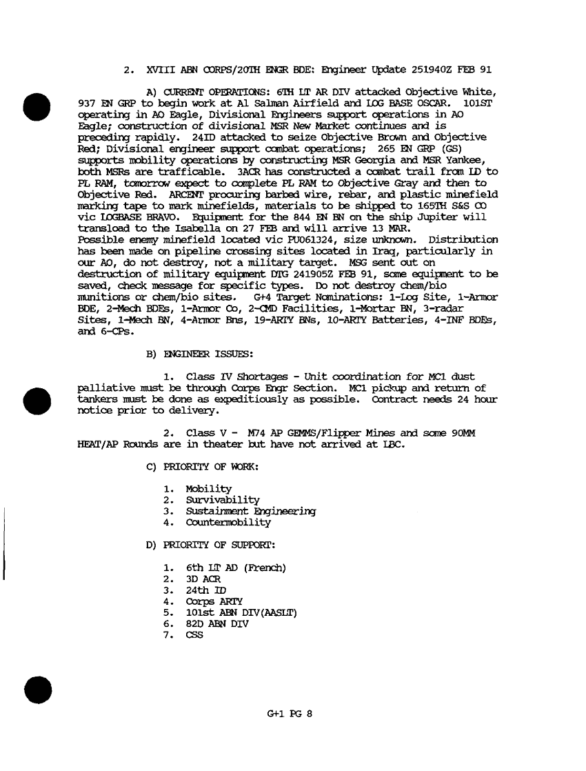 Document 99 f:/Week-33/BX000525/COMMAND REPORT AFTER ACTION REPORT ENGINEER GE CELL/operational summary 24 feb 91 g day:04189716374911