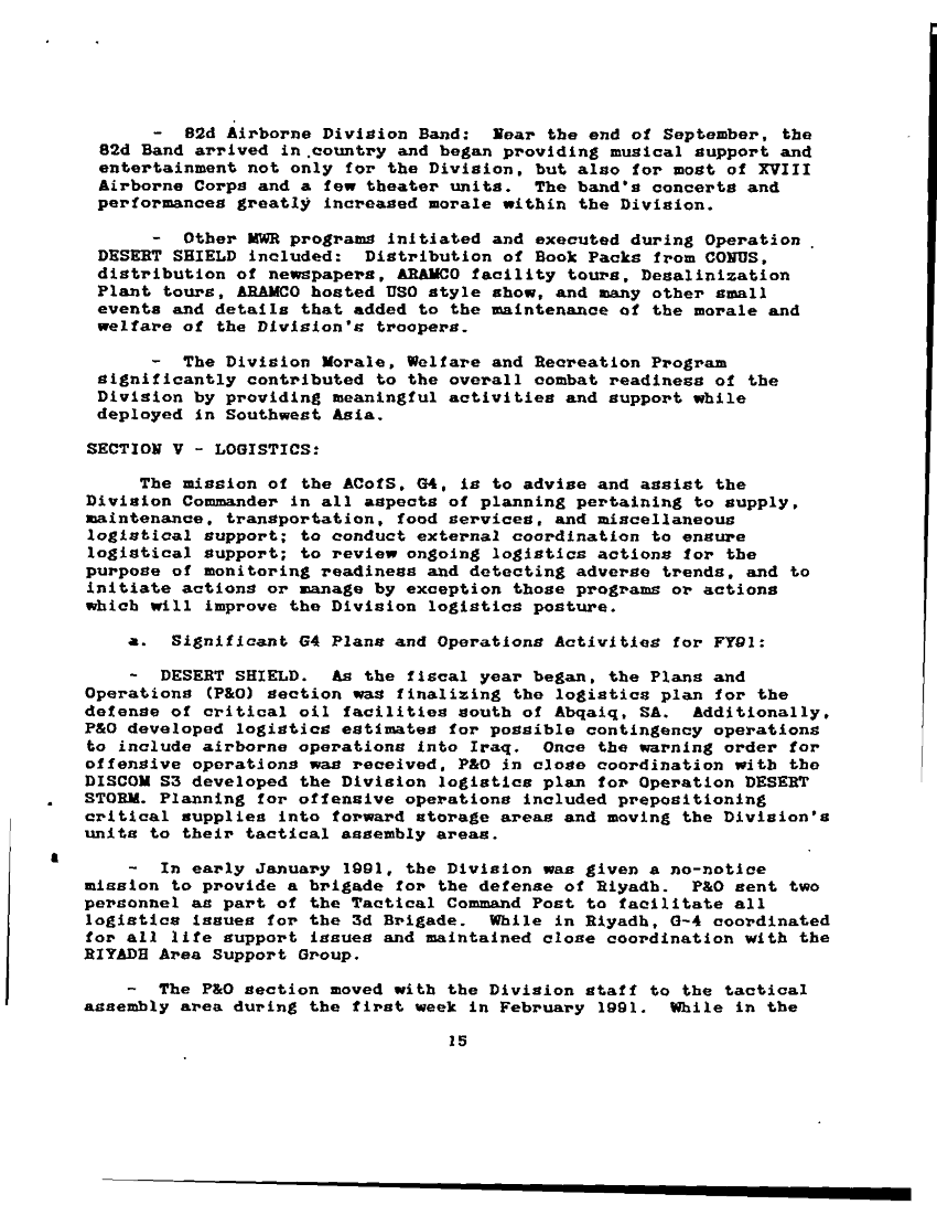 Document 96 f:/Week-22/BX001509/82D ABN DIVISION OPERATION DES RT SHEILD AND DESERT STORM COMMAND REPORT/command report narrative:04189716374810