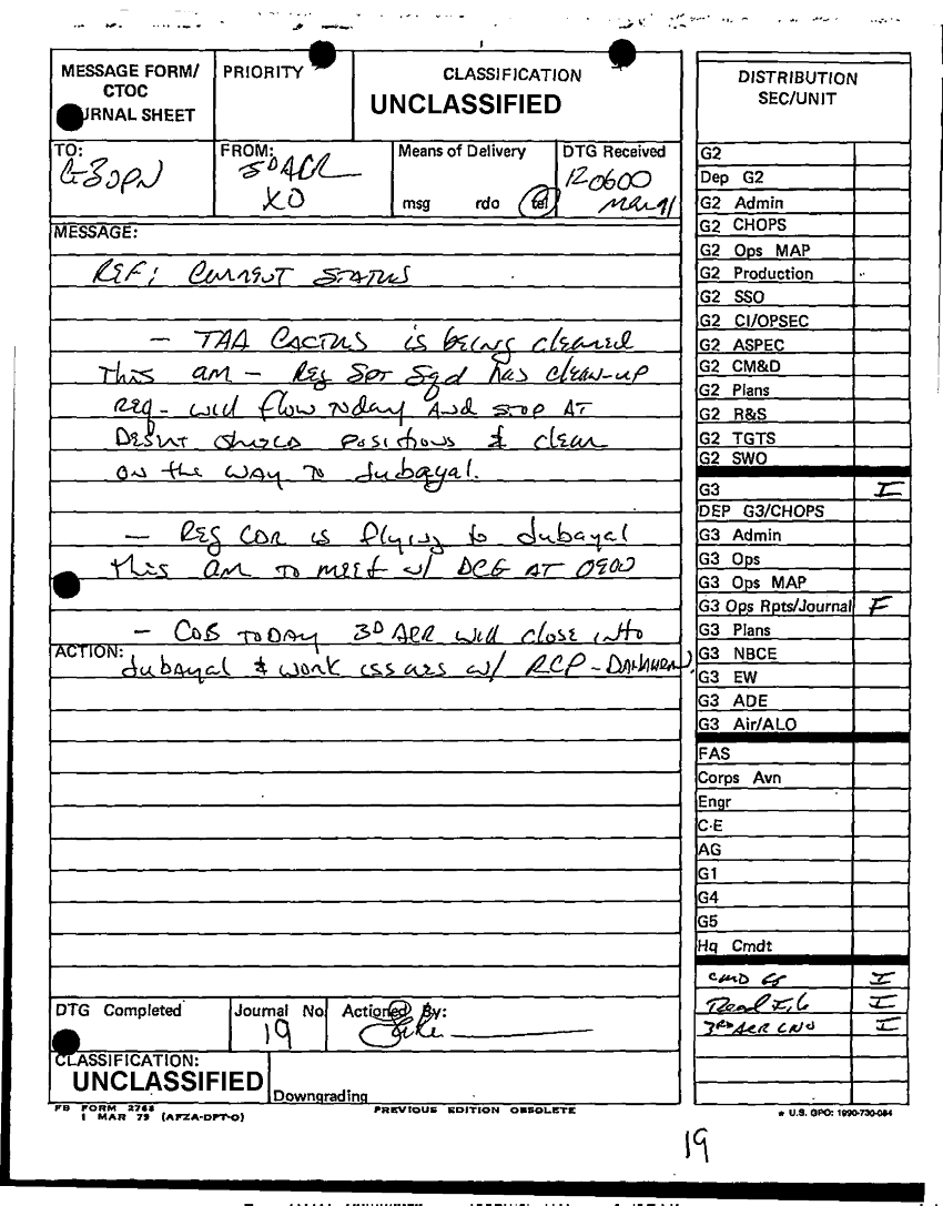 Document 80 f:/Week-10/BX000022/DUTY LOG G3 MAIN 12 MAR 91/daily staff journal or duty officers log:0418971637442