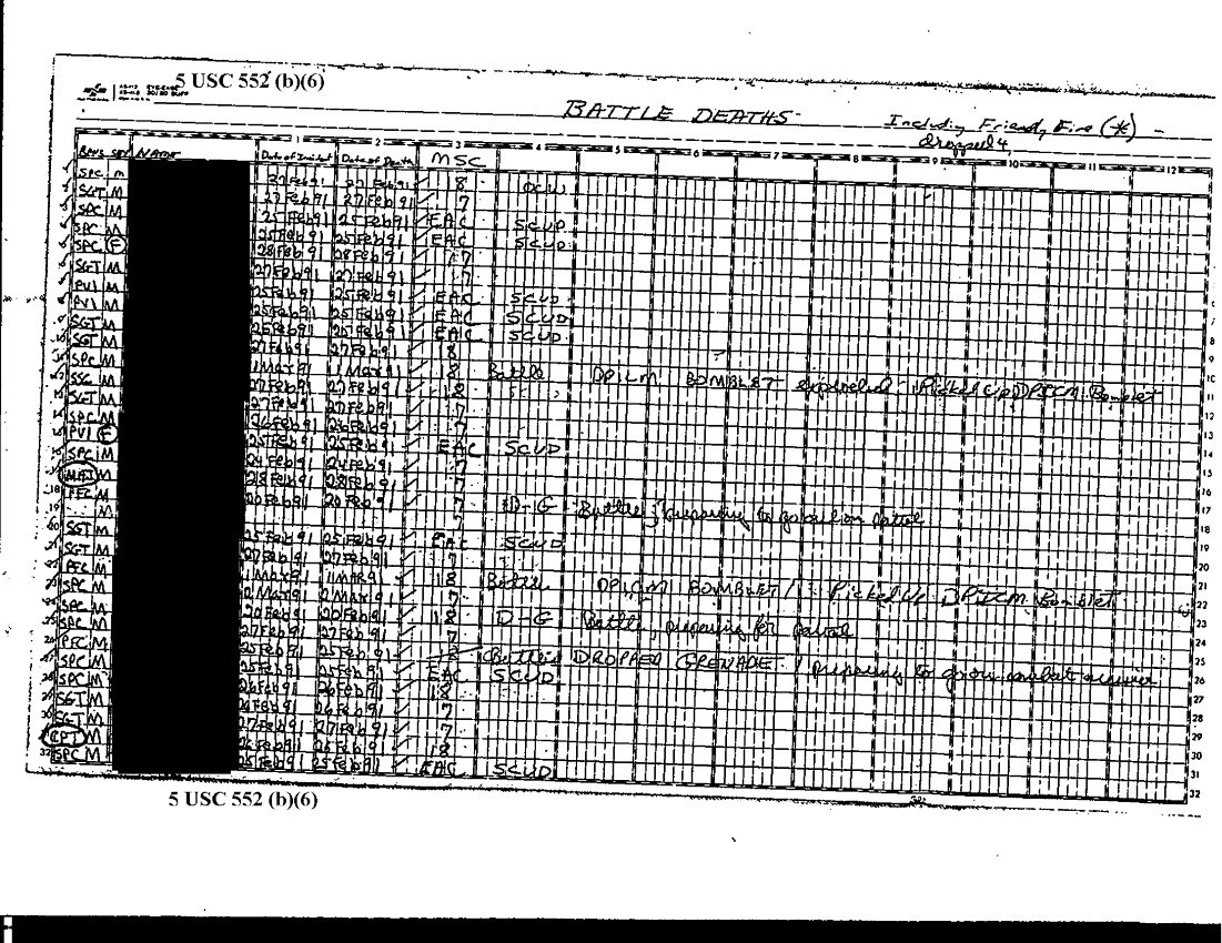 Document 6 f:/Week-28/BX000411/COMMAND REPORTS-PERSTATS JAN-MAR 91 PART 1/battle deaths:050997114016121