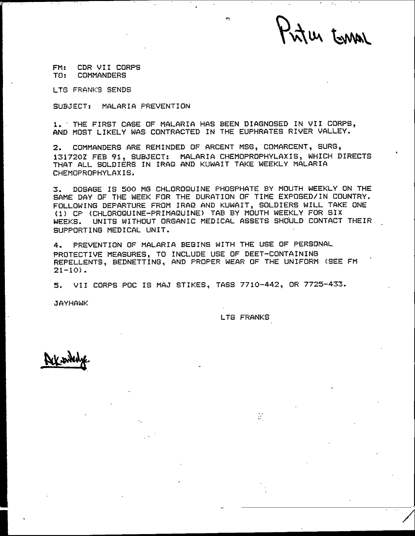 Document 2 f:/Week-43/BX000270/SUPPORTING DOCUMENTS FOR DAILY STAFF JOURNAL-23 MAR 91-TACTICAL COMMAND POST/malaria prevention:08289707514835