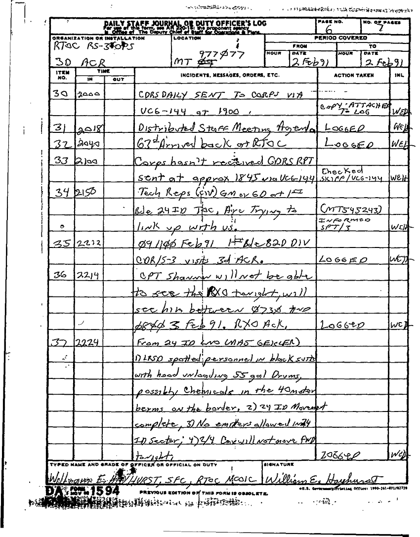 Document 23 f:/Week-62/BX001803/R-TOC 3D ACR FEB 91DUTY LOGS-MES SAGES-NOTES/daily staff journal 2feb91:0828971656563
