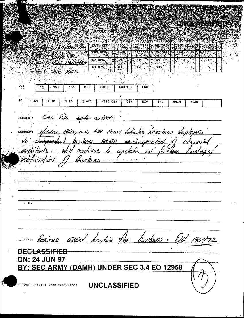 Document 19 f:/Week-25/BX000231/0007 CORPS CHEMICAL BOOK THREE-FOLDER 2 OF 2/daily staff journal or duty officers log 13 mar 91:0922971201259