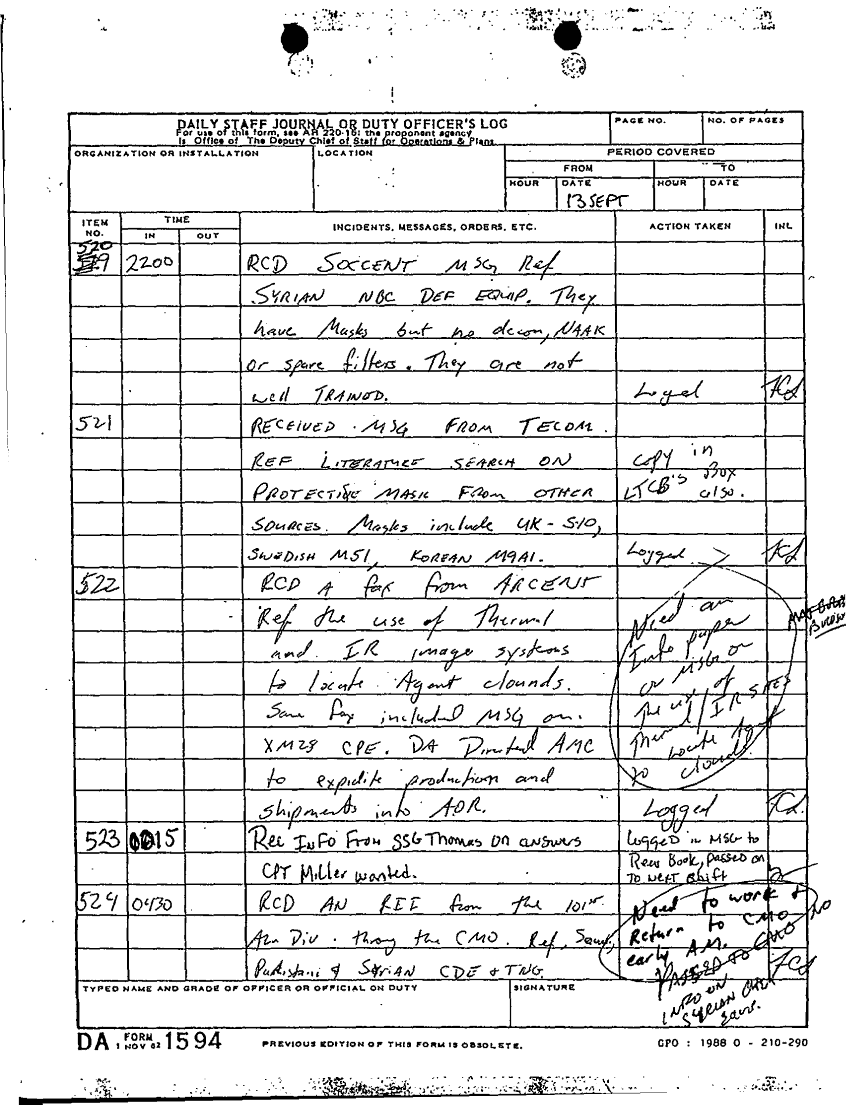 Document 36 f:/Week-64/BX000093/DAILY STAFF JOURNALS WITH MESSAGES 11 SEP-23 SEP 90/daily staff journal 10 sep:09229712012916