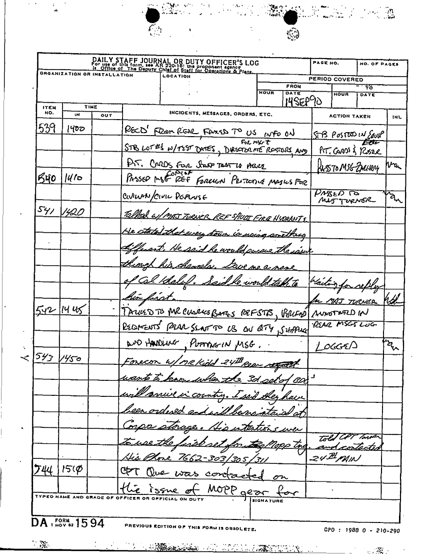 Document 36 f:/Week-64/BX000093/DAILY STAFF JOURNALS WITH MESSAGES 11 SEP-23 SEP 90/daily staff journal 10 sep:09229712012916