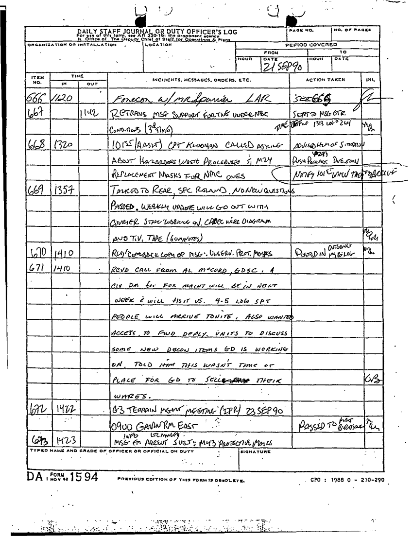 Document 36 f:/Week-64/BX000093/DAILY STAFF JOURNALS WITH MESSAGES 11 SEP-23 SEP 90/daily staff journal 10 sep:09229712012916