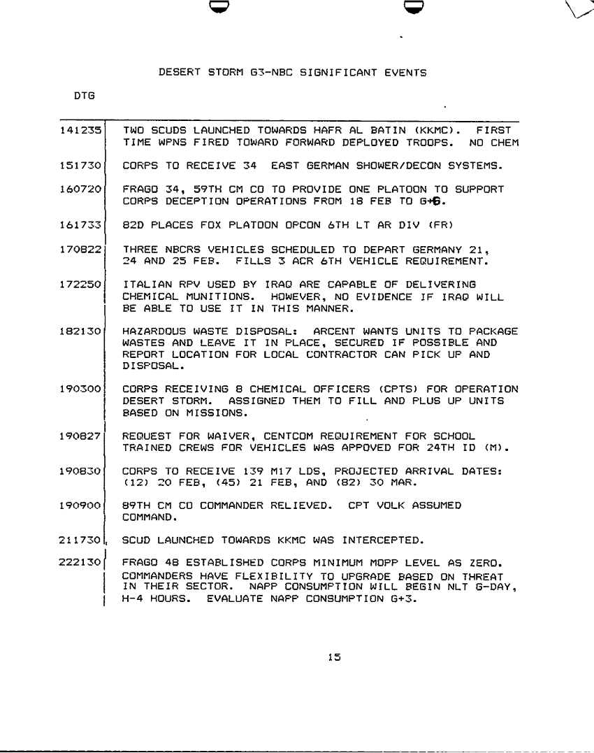 Subject = DESERT SHIELD G3 NBC SIGNIFICANT EVENTS