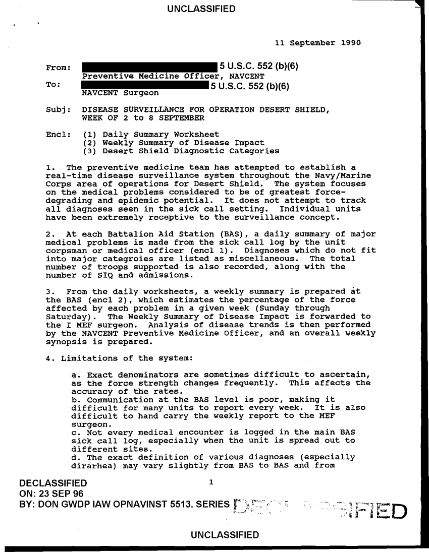 Folder Title = DISEASE SURVEILLANCE FOR OPERATION DESERT SHIELD 2 - 22 SEP 1990 1 OF 2