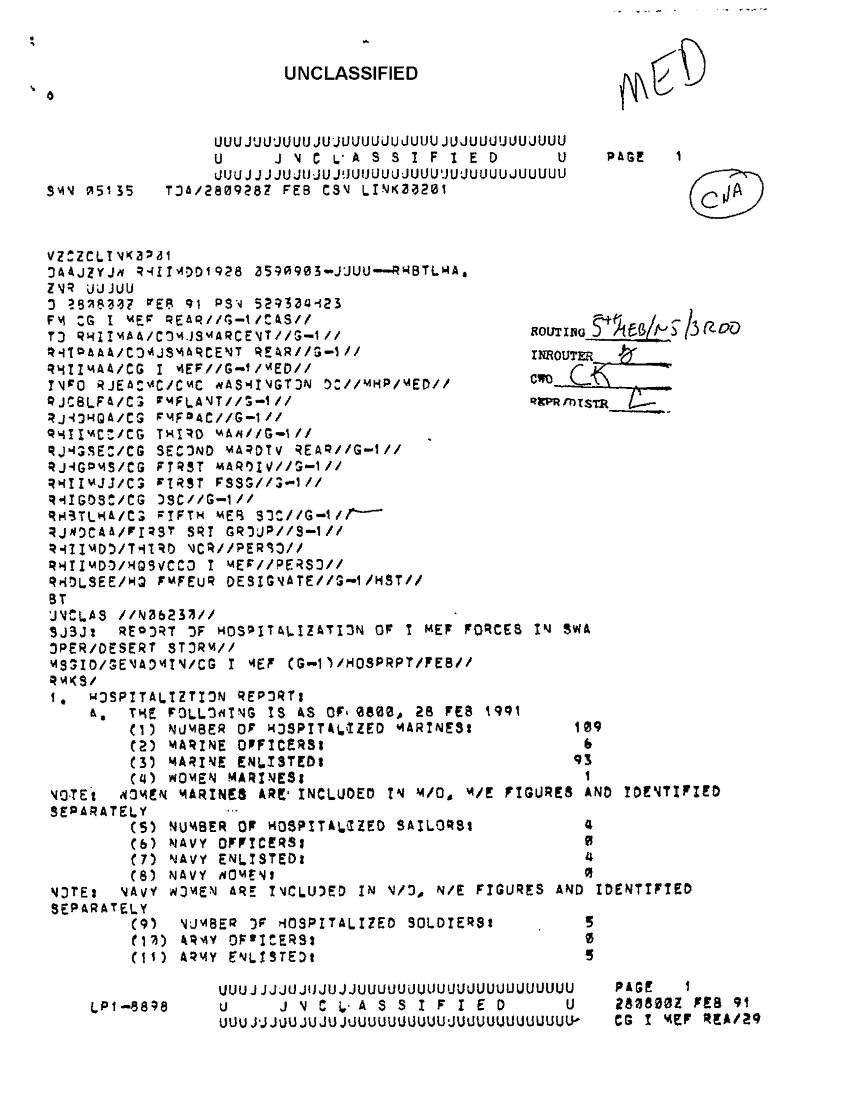 Document 5 f:/Week-39/BX303819/general medical support messages various sources feb - apr 91 cna 2077/report of hosp of i mef forces in swa 28 feb 91:11229616382310