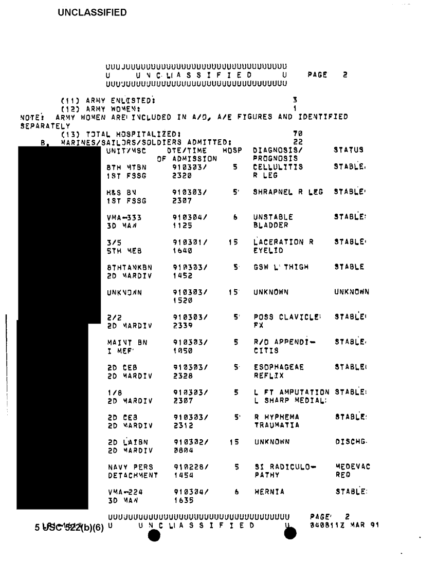 Document 8 f:/Week-39/BX303819/general medical support messages various sources feb - apr 91 cna 2077/report of hosp of i mef forces in swa 04 mar 91:11229616382412
