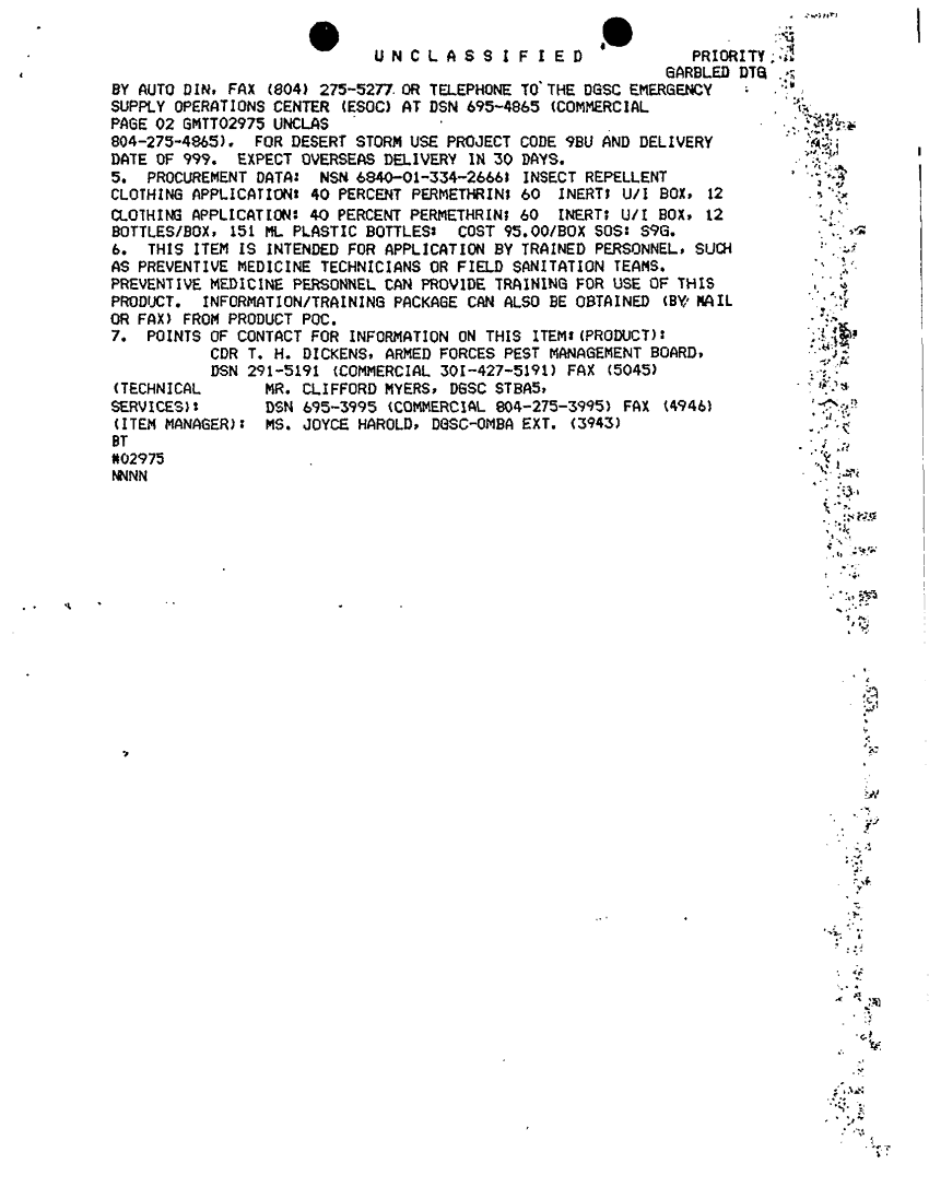 Document 2 f:/Week-39/BX303818/usns comfort tah 20 message traffic 9-16 mar 91/new disease prevention product for desert storm :1206961536263