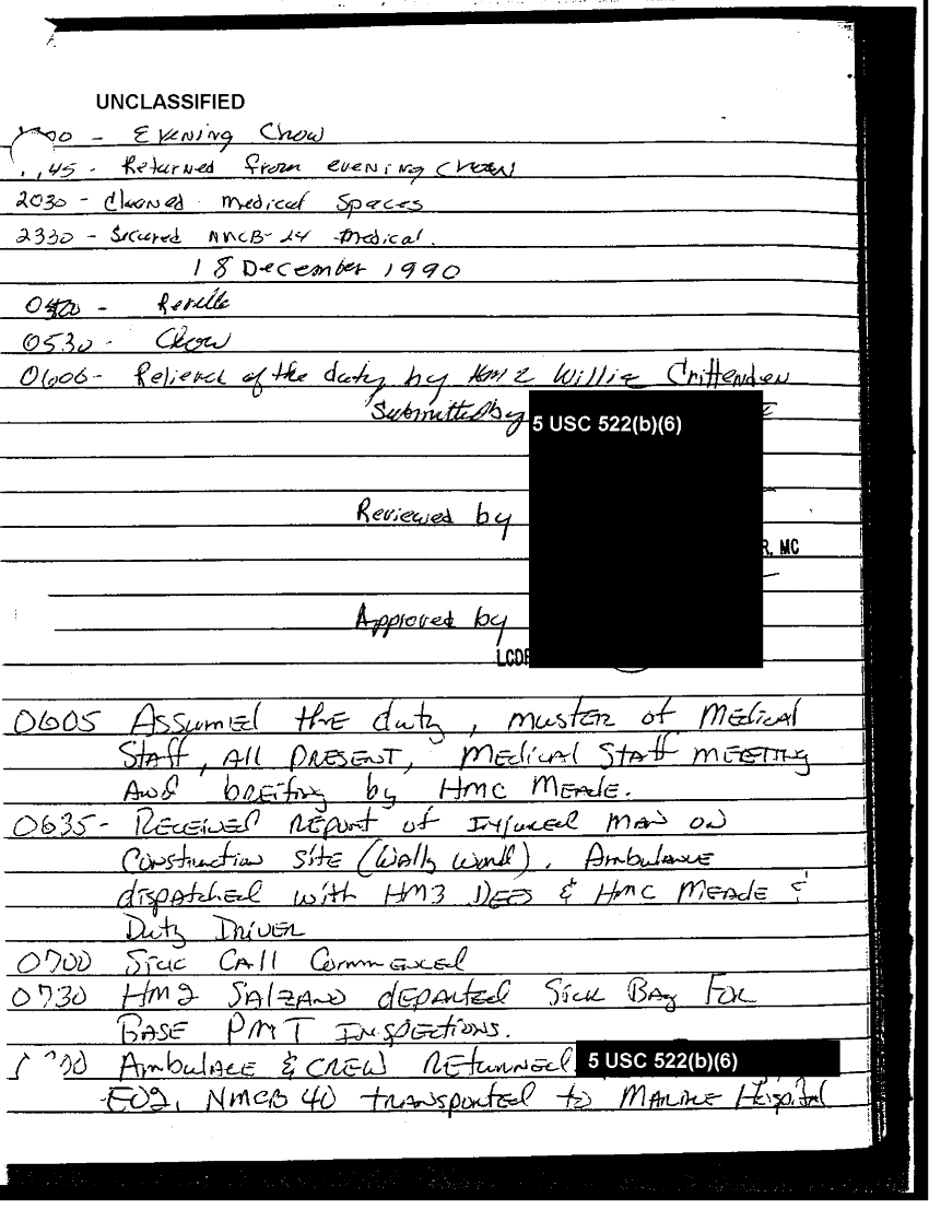 Document 122 f:/Week-37/BX303811/VARIOUS NAVAL MESSAGES FOLDER 3/nmcb 24 log record operation desert shield storm:12249609065513