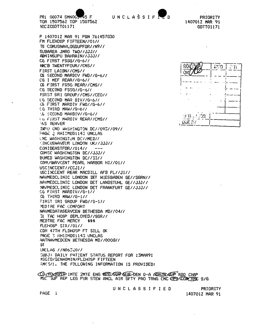 Document 2 f:/Week-44/BX303809/VARIOUS NAVAL MESSAGES FOLDER 5 MARCH 1991/daily patient status report for 13mar91 flehosp:12249609065717