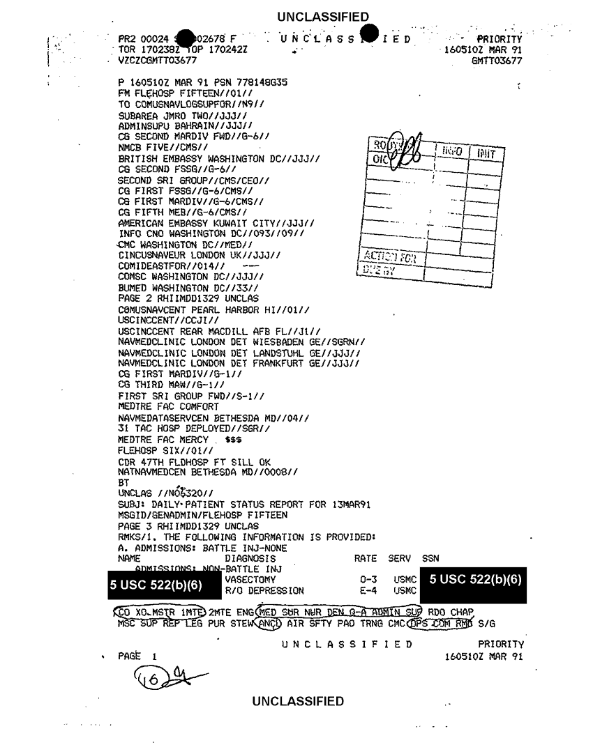 Document 2 f:/Week-44/BX303809/VARIOUS NAVAL MESSAGES FOLDER 4 MARCH 1991/daily patient status report for 13mar91 flehosp :12249609065921