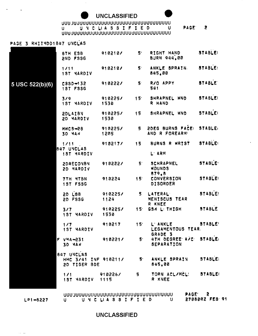 Document 10 f:/Week-39/BX303819/general medical support messages various sources feb - apr 91 cna 2077/report of hosp of i mef forces in swa 27 feb 91:1224960906516