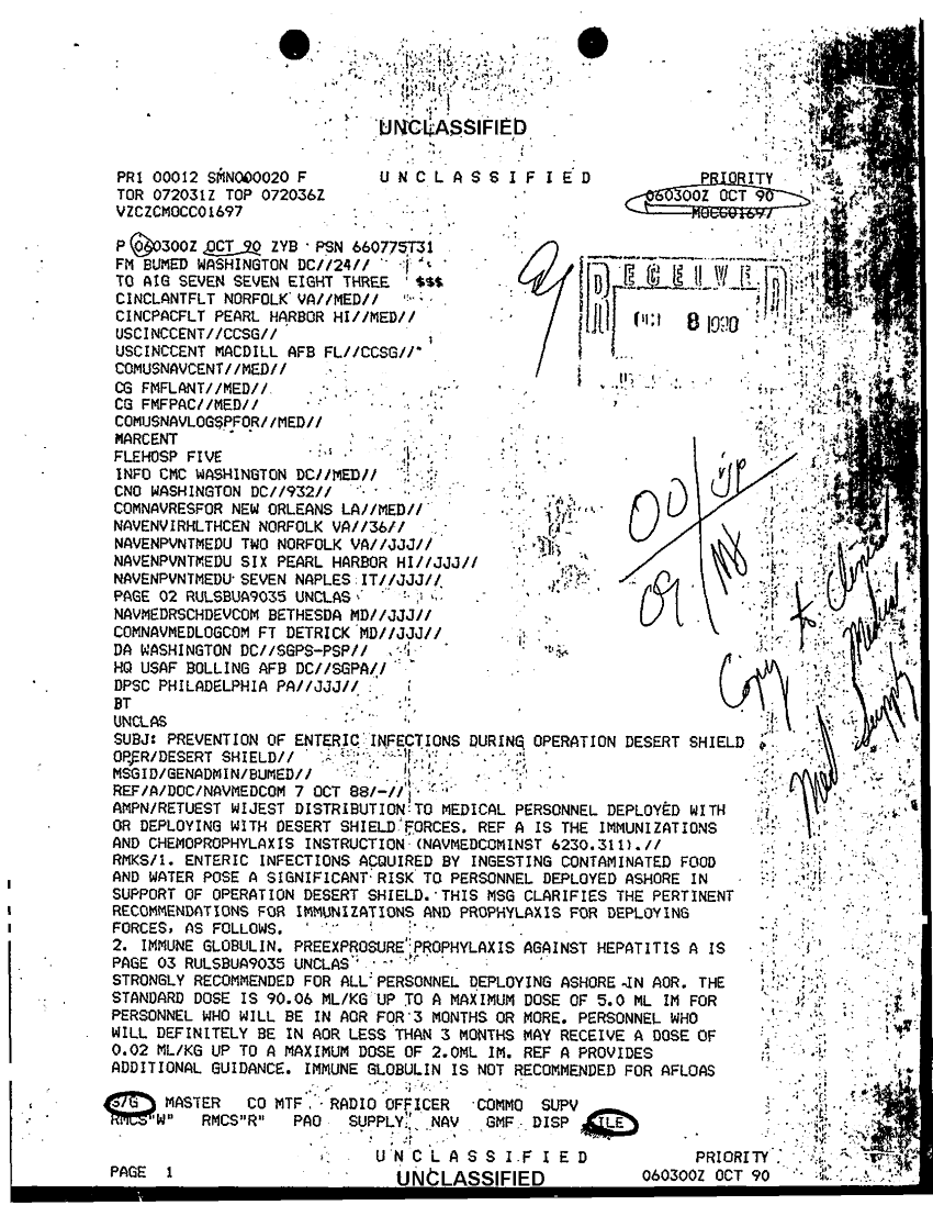 Document 2 f:/Week-38/BX303817/usns comfort tah 20 message traffic 22 sep-9 oct 90/prev of enteric infect during ops desert shield :1224960906527