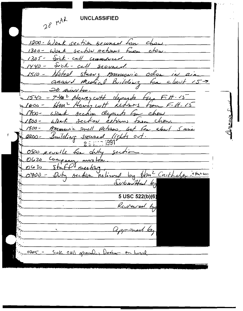 Document 49 f:/Week-37/BX303811/VARIOUS NAVAL MESSAGES FOLDER 4/various journal entries sick call 22 mar 91:0324971041562