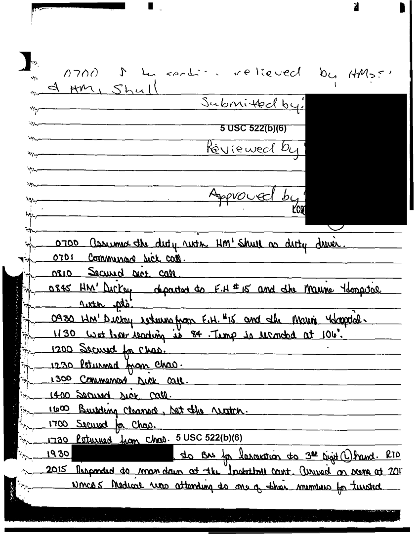 Document 49 f:/Week-37/BX303811/VARIOUS NAVAL MESSAGES FOLDER 4/various journal entries sick call 22 mar 91:0324971041562