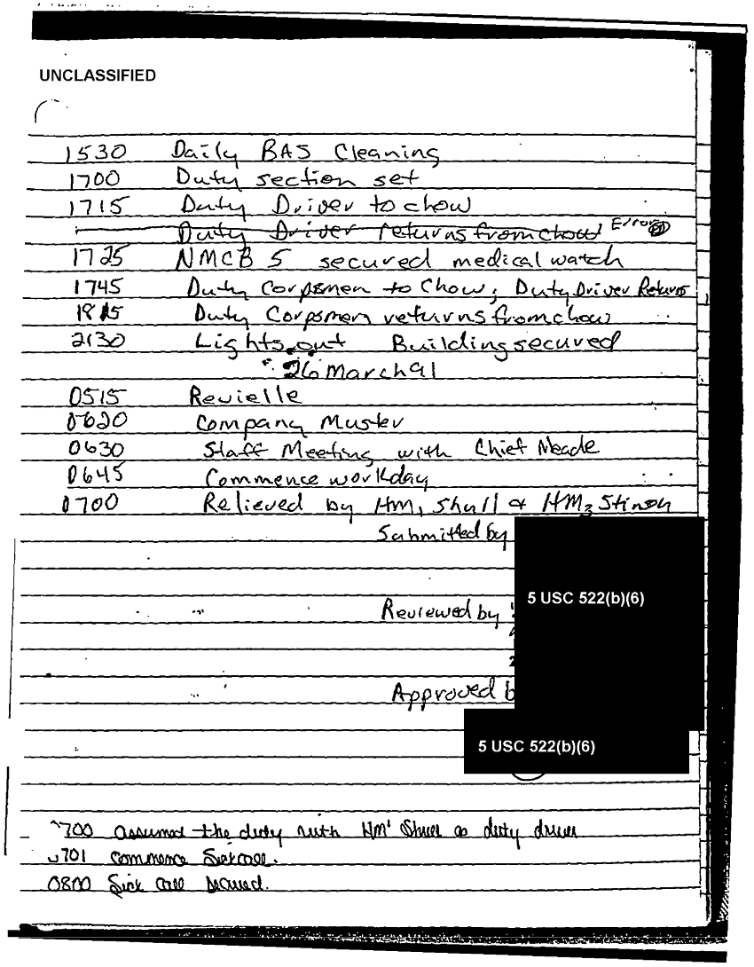 Document 49 f:/Week-37/BX303811/VARIOUS NAVAL MESSAGES FOLDER 4/various journal entries sick call 22 mar 91:0324971041562