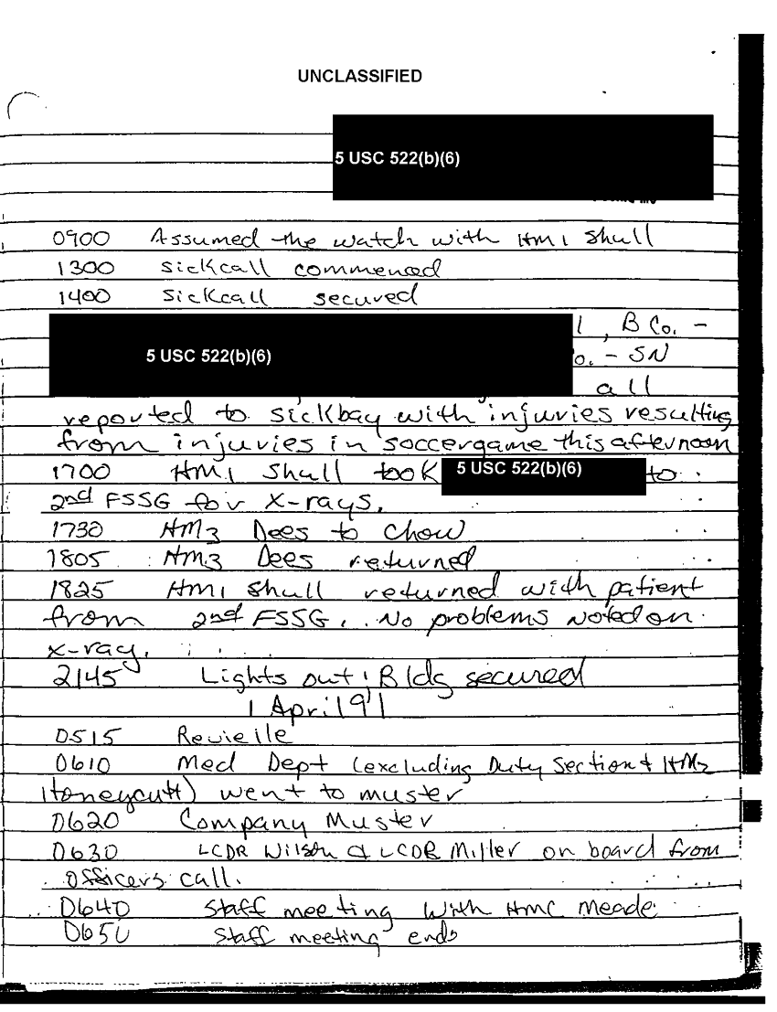 Document 49 f:/Week-37/BX303811/VARIOUS NAVAL MESSAGES FOLDER 4/various journal entries sick call 22 mar 91:0324971041562