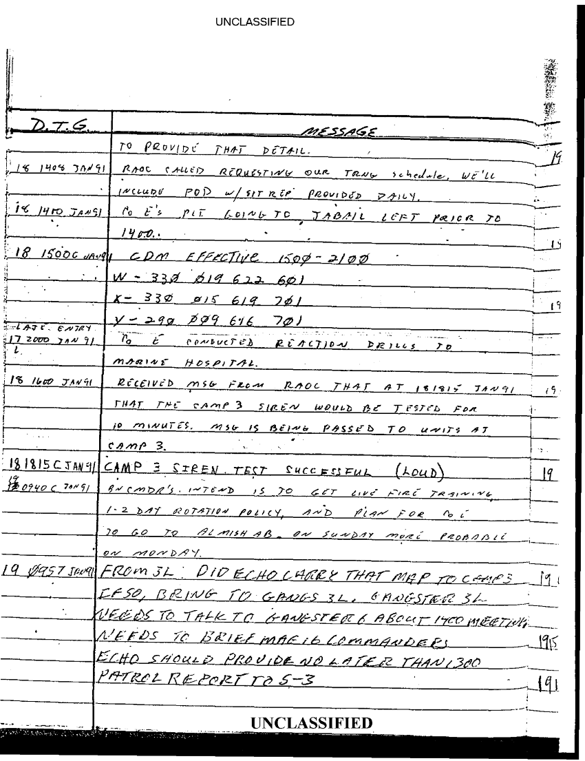 Document 67 f:/Week-35/BX600013/COMMAND CHRONOLOGY 2ND BATTALION 24TH MARINES JAN - MAR 1991 2 OF 2/statement reference s 3 logs 9 jan 1991:0913961614048