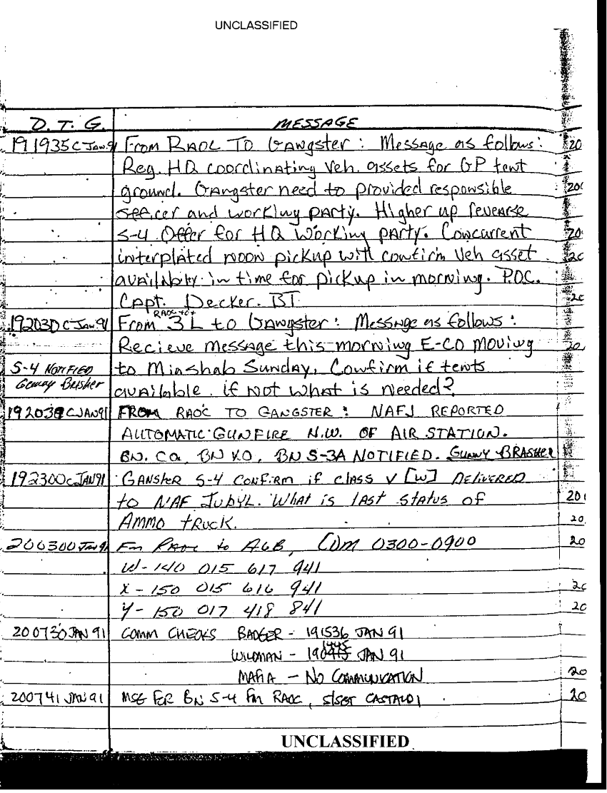 Document 67 f:/Week-35/BX600013/COMMAND CHRONOLOGY 2ND BATTALION 24TH MARINES JAN - MAR 1991 2 OF 2/statement reference s 3 logs 9 jan 1991:0913961614048