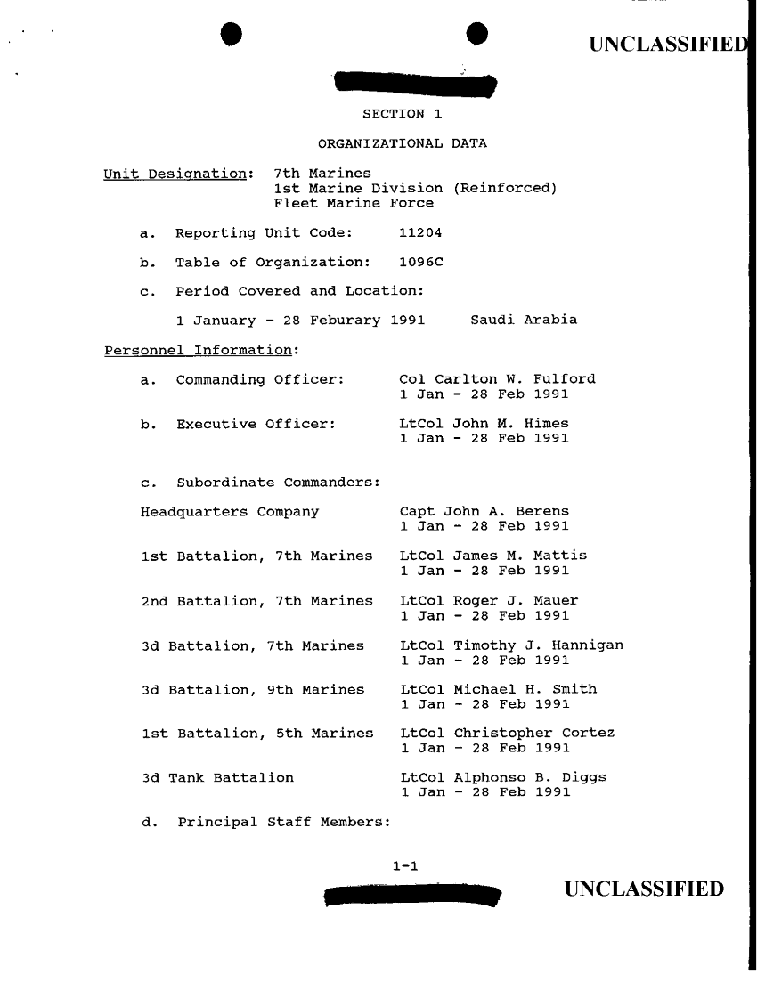 Document 19 f:/Week-34/BX600007/COMMAND CHRONOLOGY 7TH MARINES 1 JAN - 28 FEB 1991/command chronology for the period 1 january to 2:0906961537153