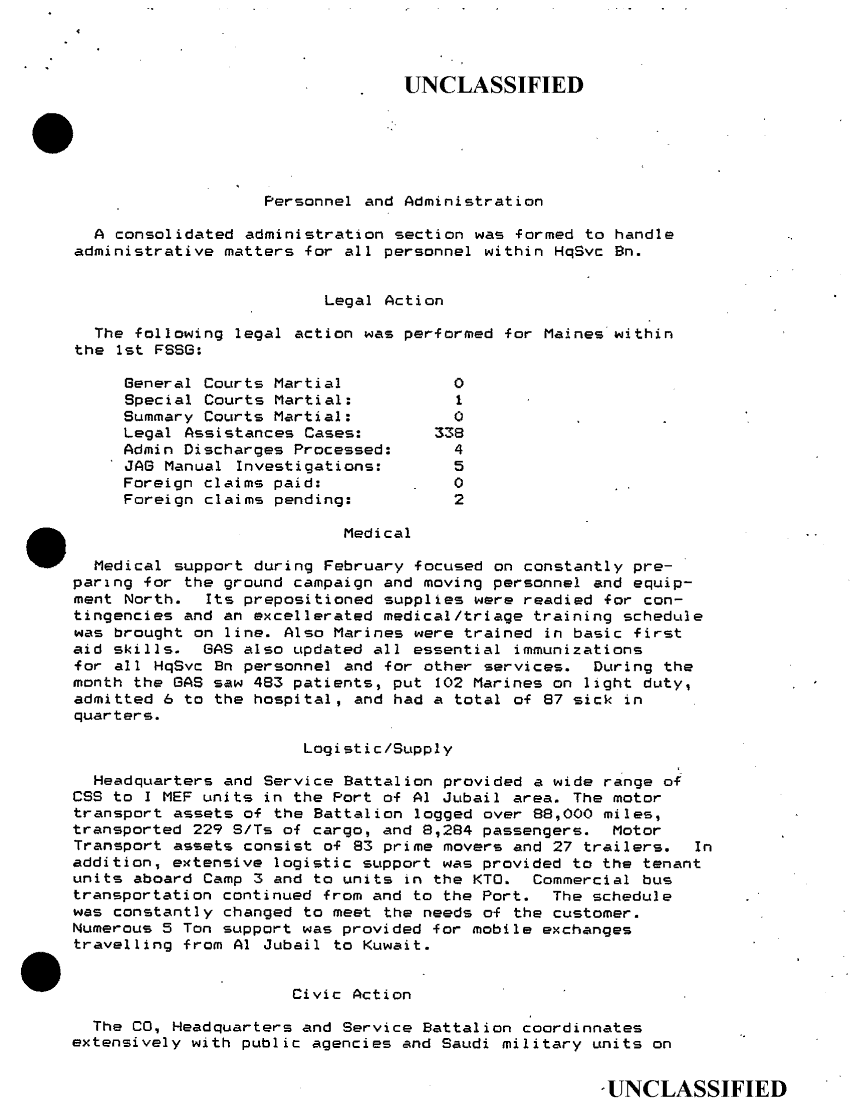 Document 20 f:/Week-34/BX600011/COMMAND CHRONOLOGY 1ST FORCE SERVICE SUPPORT GROUP DEC 1990 TO FEB 1991/command chronology for the period 1 28 feb 91 1:0906961537205