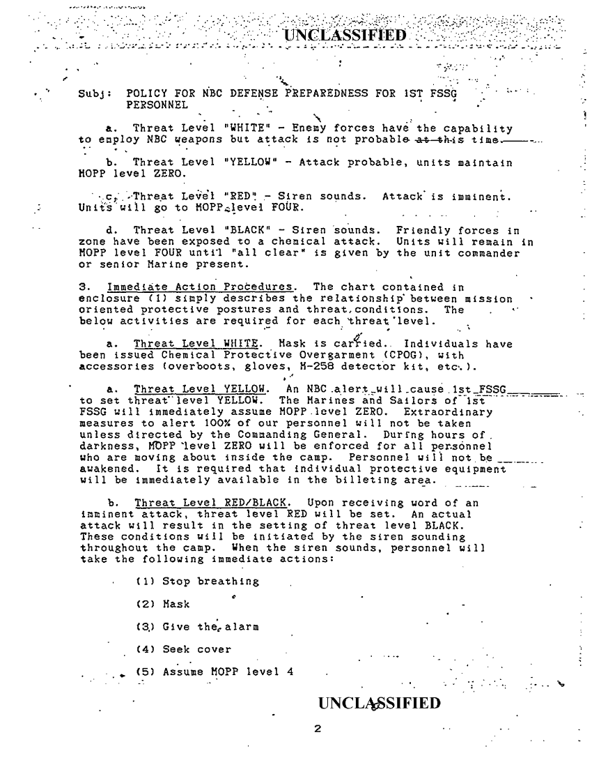 Subject = POLICY FOR NBC DEFENSE PREPAREDNESS FOR 1ST FSSG