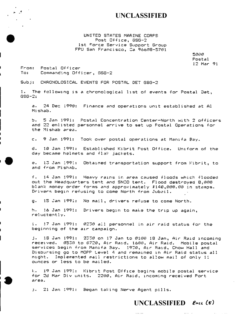 Document 17 f:/Week-34/BX600011/COMMAND CHRONOLOGY GENERAL SERVICE SUPPORT GROUP 2 DEC TO MAR 1991 2 OF 2/hqtrs det command chronology 12 dec 90 7 mar 91:0906961537289