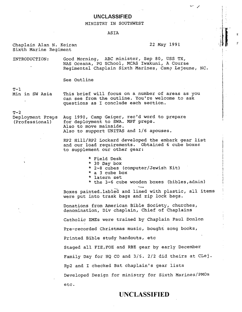 Document 10 f:/Week-34/BX600006/COMMAND CHRONOLOGY 6TH MARINES APR - JUNE 1991/deployment preps swa 6th marine regiment 22 ma:100196125356