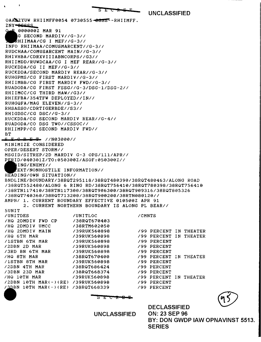 Document 3 f:/Week-35/BX600014/COMMAND CHRONOLOGY 2ND MARINE DIVISION SUPPORTING DOCUMENTS 5 OF 10 JAN - APRIL 1991/sitrep 2d mar div g3 ops 111 apr:100196125359