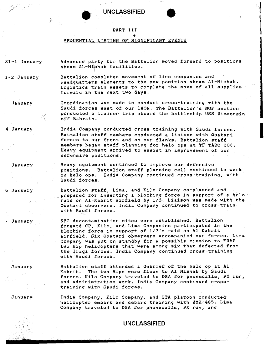 Document 3 f:/Week-35/BX600016/COMMAND CHRONOLOGY 3RD BATTALION 3RD MARINES JAN - FEB 1991/sequential listing of significant events:0925961703251