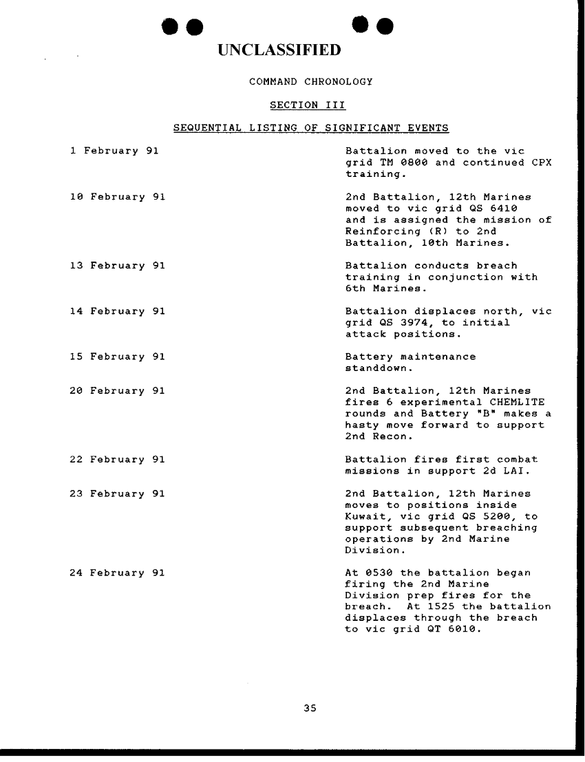Document 16 f:/Week-38/BX600025/COMMAND CHRONOLOGY 2ND BATTALION 12TH MARINE REGIMENT JUL 90 - JUN 91/command chronology for period 1 feb to 28 feb 19:100196125403