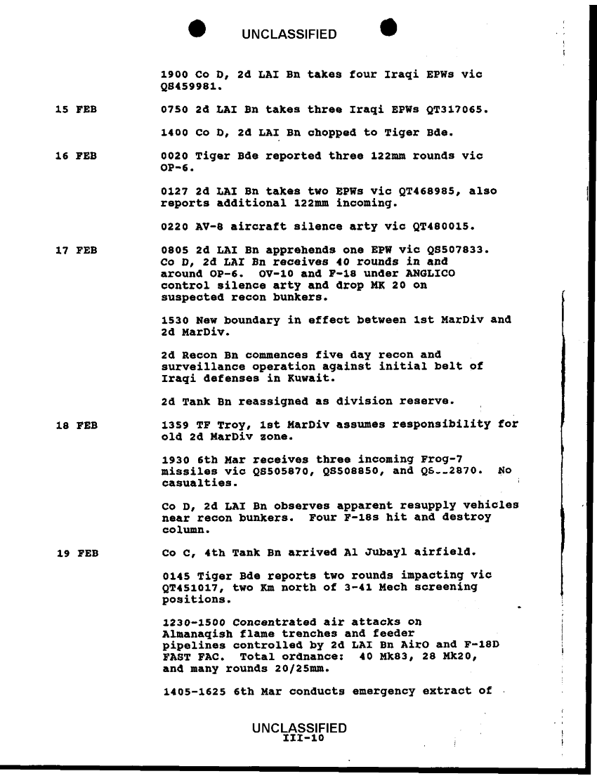 Document 29 f:/Week-35/BX600014/COMMAND CHRONOLOGY 2ND MARINE DIVISION 1 OF 10 JAN - APRIL 1991/command chronology for the period 1 jan to 13 ap:1004961340327