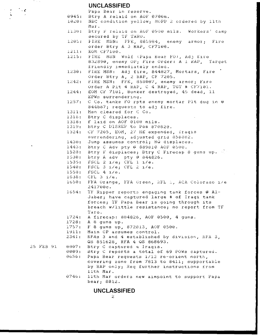 Document 5 f:/Week-38/BX600025/COMMAND CHRONOLOGY 1ST BATTALION 12TH MARINE REGIMENT JAN - FEB 1991/timeline 1st bn 12th mar cbt ops 23 feb 1 mar 91:10189614542827