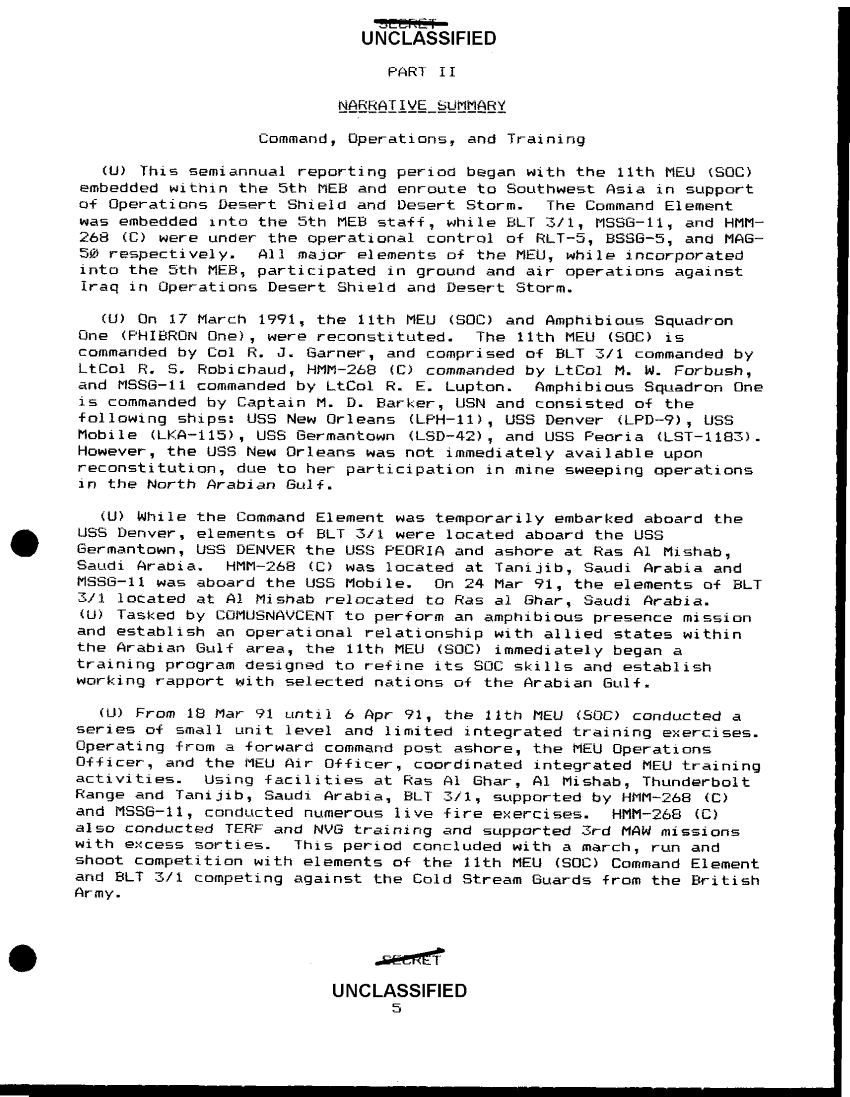 Document 16 f:/Week-38/BX600025/COMMAND CHRONOLOGY 11TH MARINE EXPEDITIONARY UNIT JAN - JUN 1991/command chronology for the period 1 jan 1991 to :1018961454053