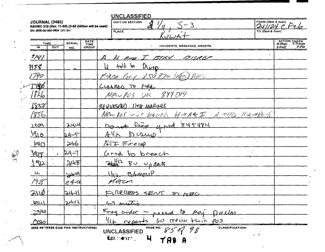Folder Title = COMMAND CHRONOLOGY 1ST BATTALION 11TH MARINES JAN - FEB 1991