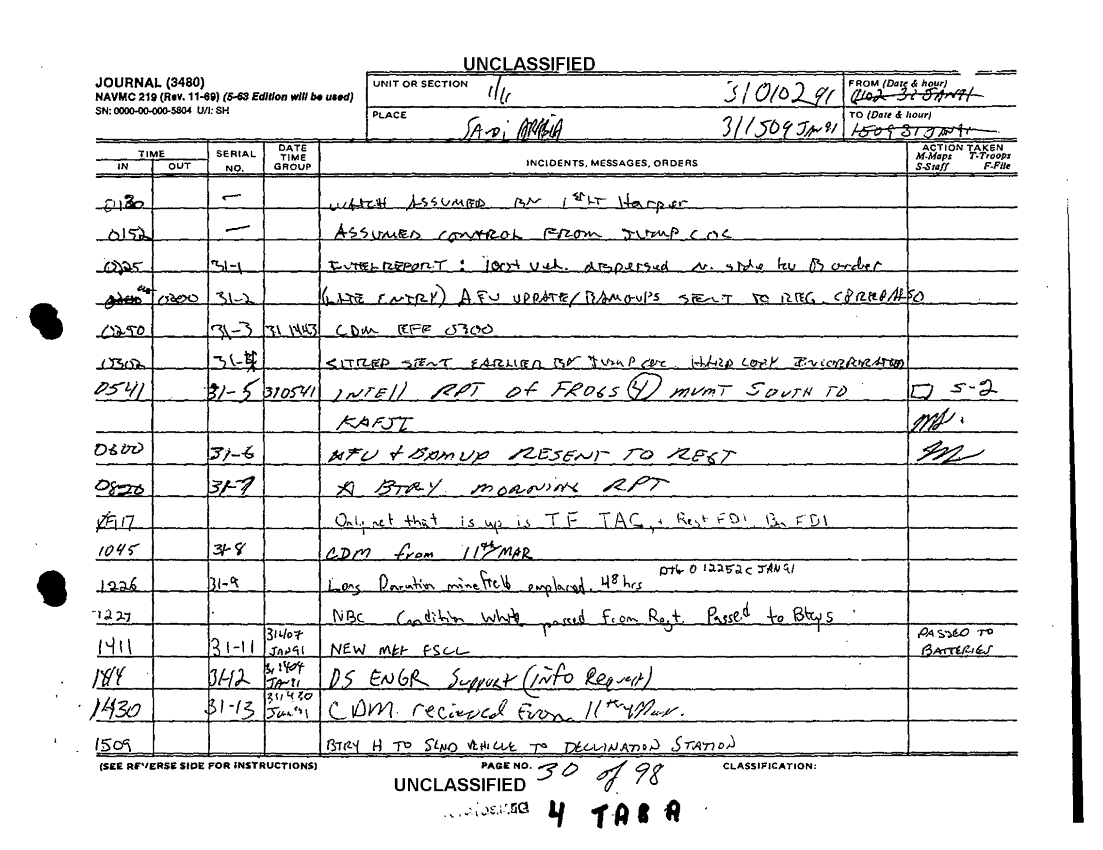 Document 98 f:/Week-36/BX600015/COMMAND CHRONOLOGY 1ST BATTALION 11TH MARINES JAN - FEB 1991/command chronology for period 1 jan to 28 feb 91:1025961320039