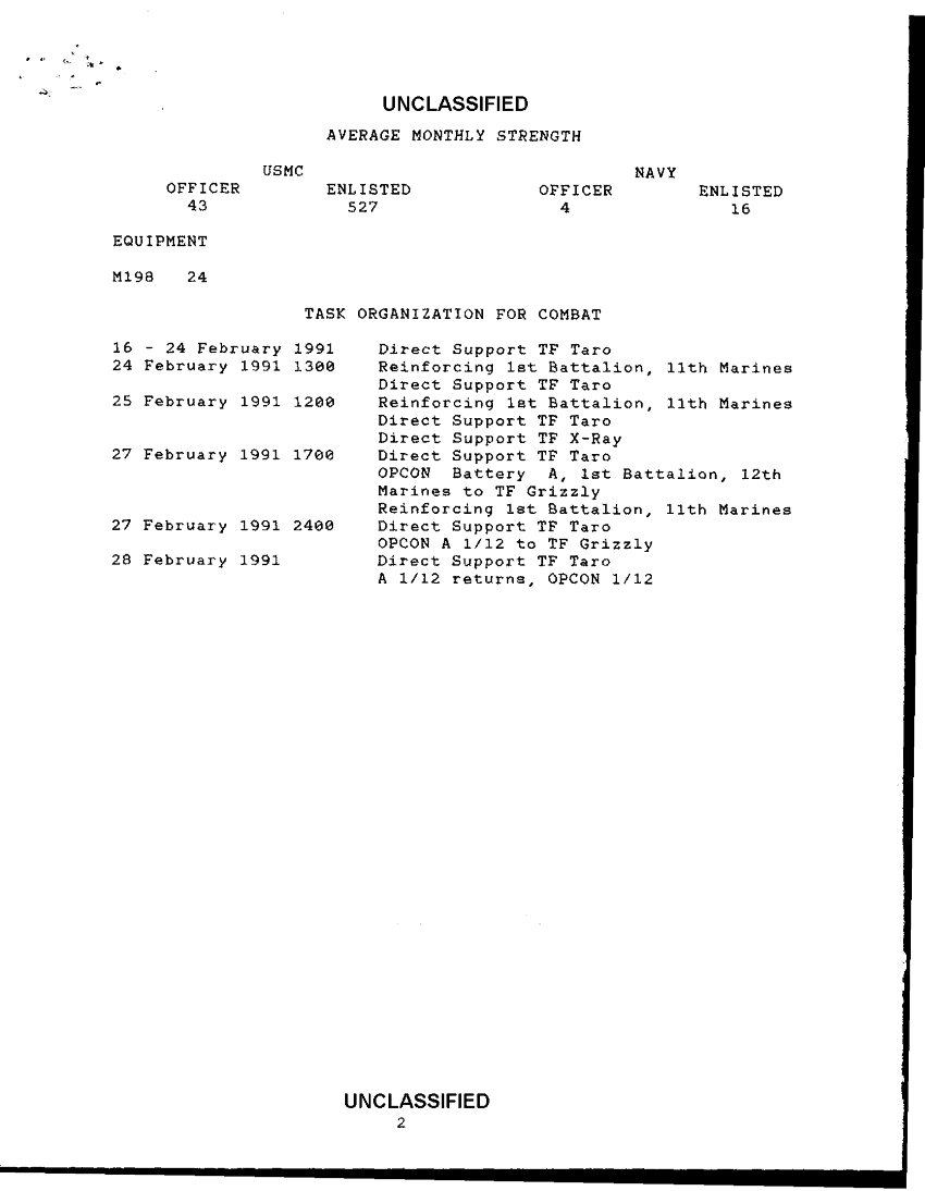Document 11 f:/Week-38/BX600025/COMMAND CHRONOLOGY 1ST BATTALION 12TH MARINE REGIMENT JAN - FEB 1991/cmd chronology 16 28 feb 91 7 mar 91:10259613200511