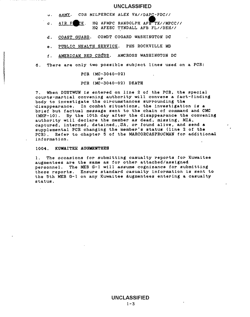 Subject = COMBAT CASUALTY ADMIN PROCEDURES
